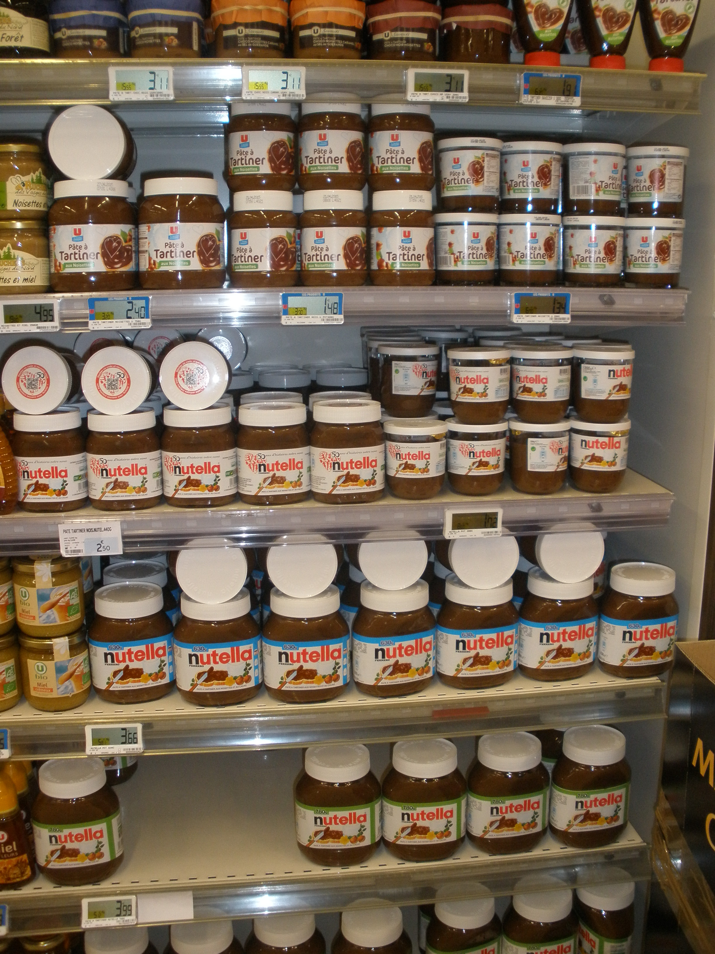If you’ve been to Brussels, you know all about the Belgian obsession with chocolate hazelnut spread, most commonly known by the brand name “Nutella.” In the US, most markets will stock just a few jars of Nutella somewhere near the rows and rows of peanut butter jars. In Belgium, this trend is reversed. Here’s an example:
