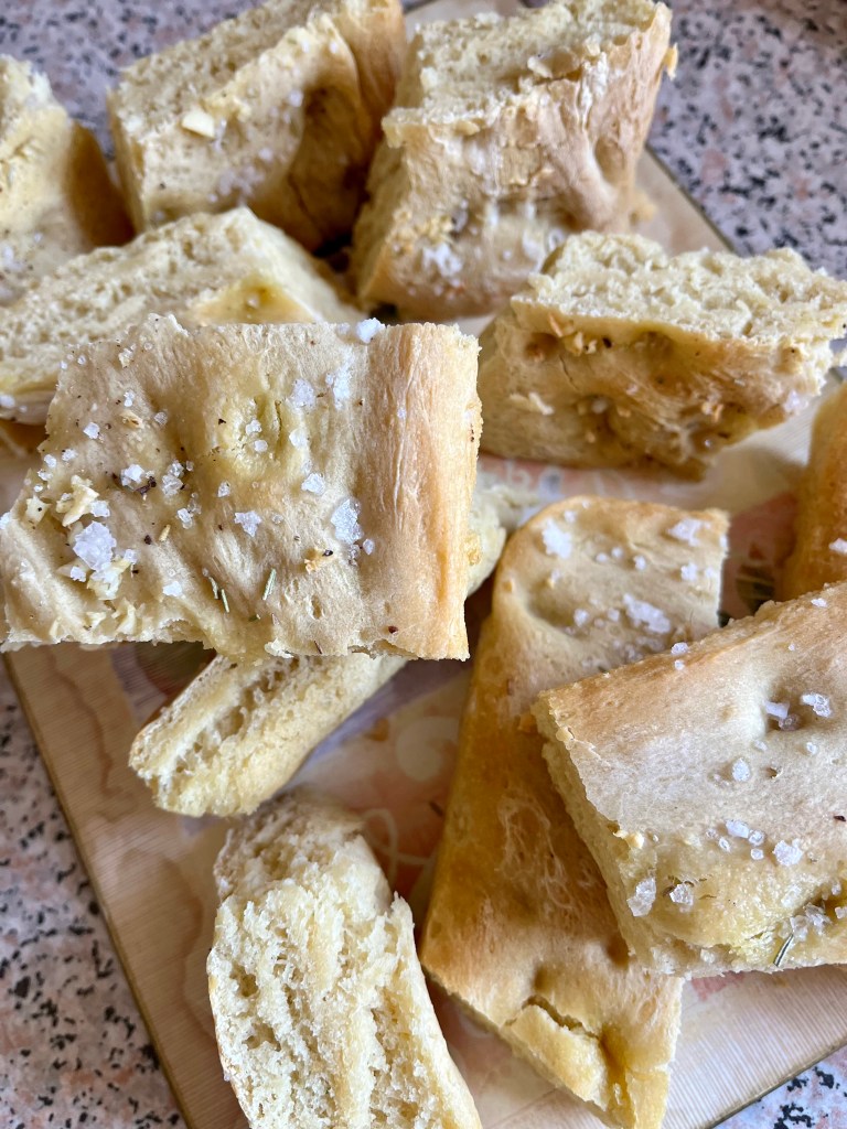 Crowded Earth Kitchen followers will be familiar with Simple Bread as a made-from-scratch staple. For a Mediterranean twist on an old favorite, here is a recipe for Simple Foccacia Bread. It’s delicious with a variety of dipping sauces (think olive oil and balsamic vinegar, or even pizza sauce) and also delicious as a base for bruschetta. Enjoy!