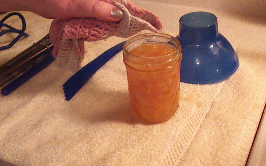 Step 8) Wipe clean the rim of your jar with a clean, damp cloth. Your jar rims must be absolutely clean in order to seal properly. Take care with this step!